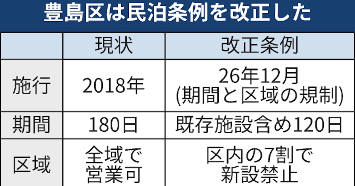 同じ時期に、大阪市の特区民泊新規受付終了や、東京都豊島区での営業日数・エリア制限など、各地で規制強化のニュースも相次いでいます。