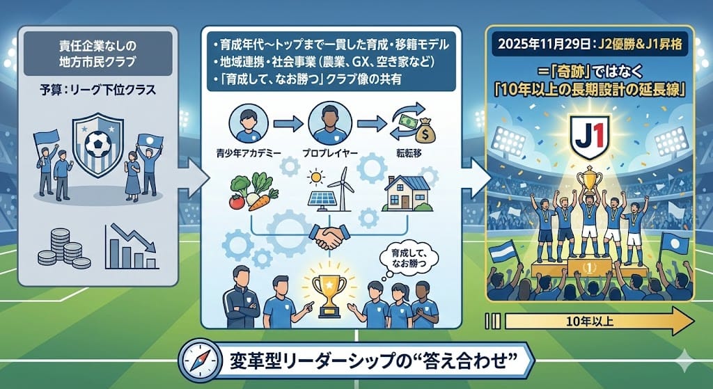 今回は、「J1昇格」という結果が出た今だからこそ見えてくるものを、あらためて整理してみたいと思います。