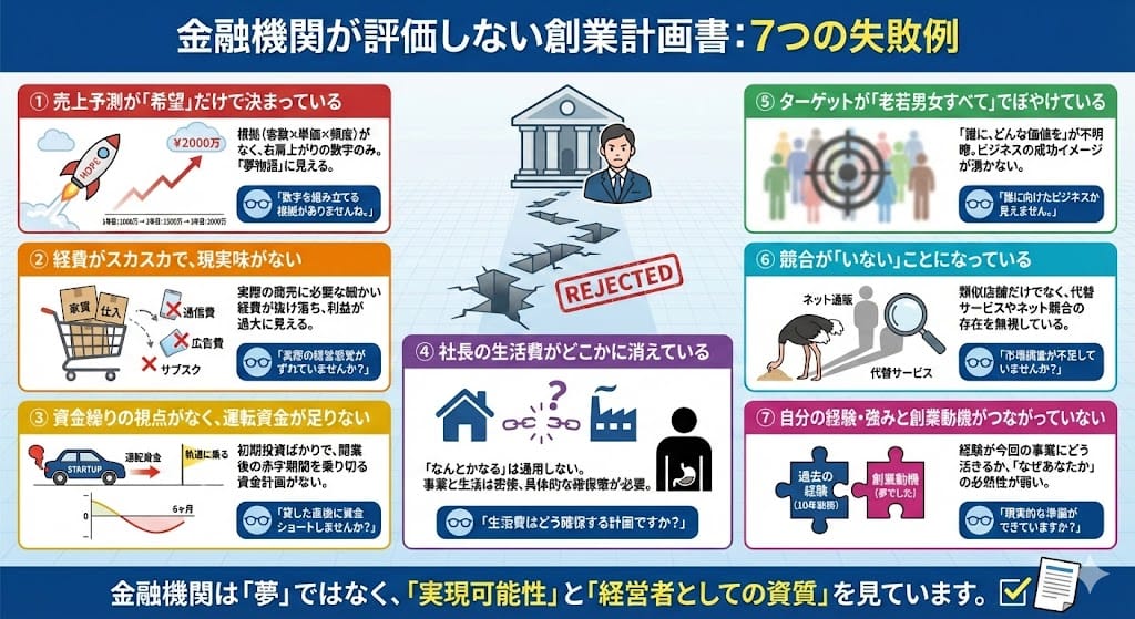 金融機関が評価しない創業計画書:7つの失敗例