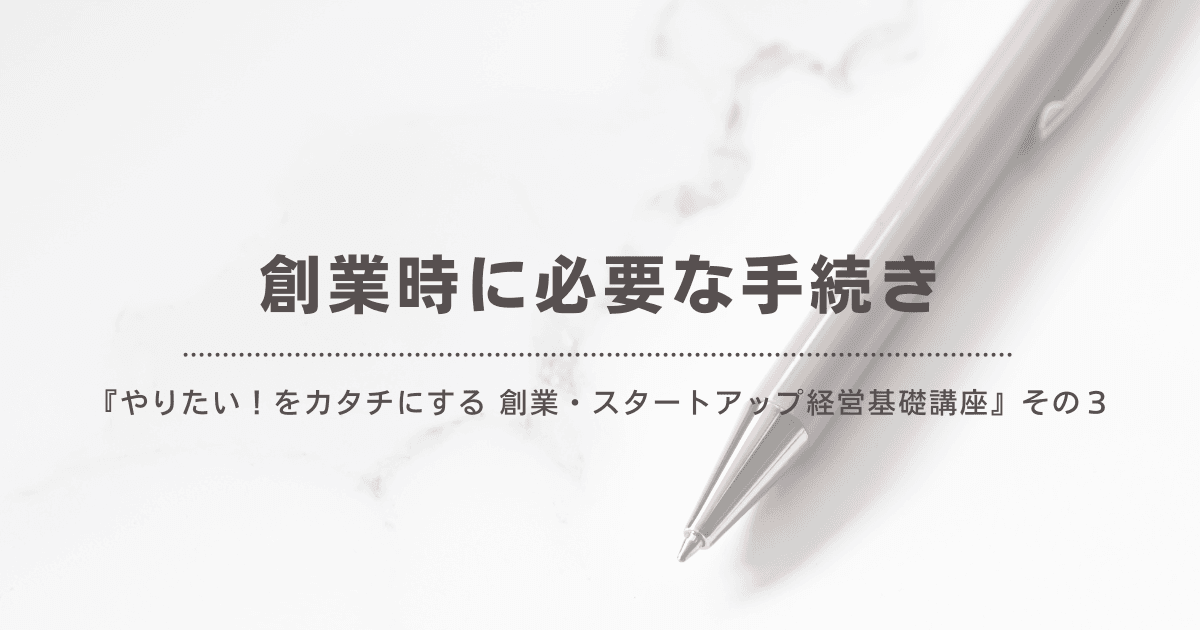 <創業・スタートアップ経営基礎講座>第3回「創業時に必要な手続き」