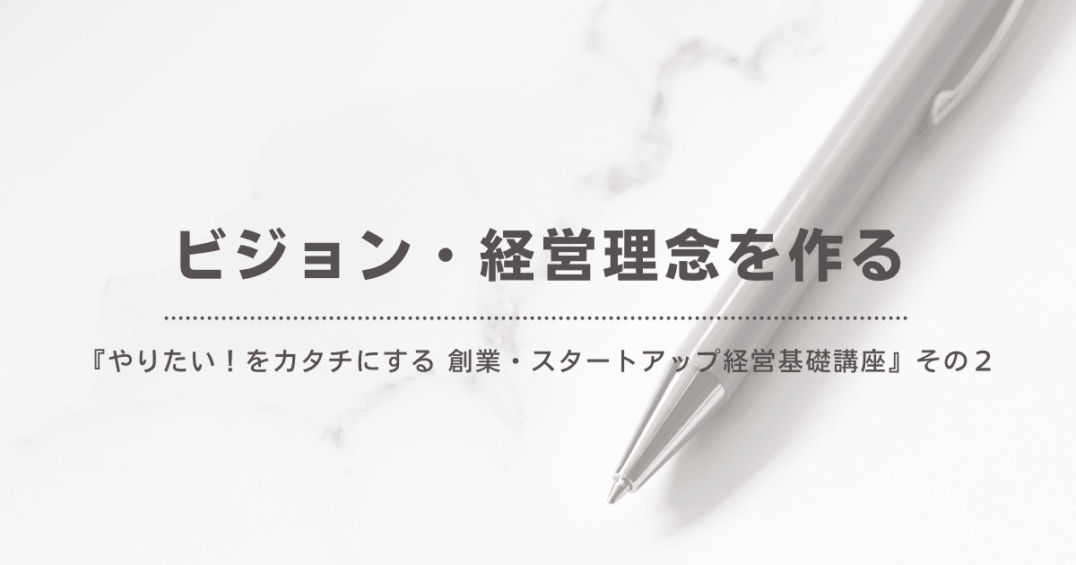 <創業・スタートアップ経営基礎講座>第2回「ビジョン・経営理念を作る」