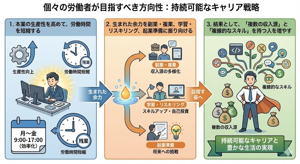 • 時短・副業・技能投資・DXで「1時間あたりの付加価値」を上げる方向